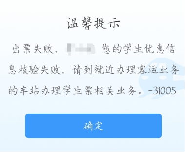 当员工买票在12306买票时提示优惠信息核验失败时(如下图3、图4所示),请员工在资质查询里仔细核查所绑定的优惠区间(如图1所示)是否是正确的站点名称,若发现绑定站点不正确或与实际乘车区间(学校--家庭)不符时,请尽快找老师修改优惠卡内站名名称,然后去车站自助机刷身份证、优惠卡重新绑定资质信息,重新绑定资质以后12306上资质信息区间修改成功后才可以买票!