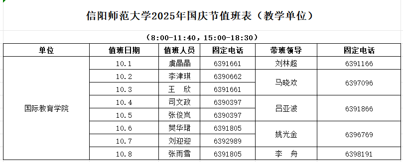 m88官网2025年国庆节假期值班表